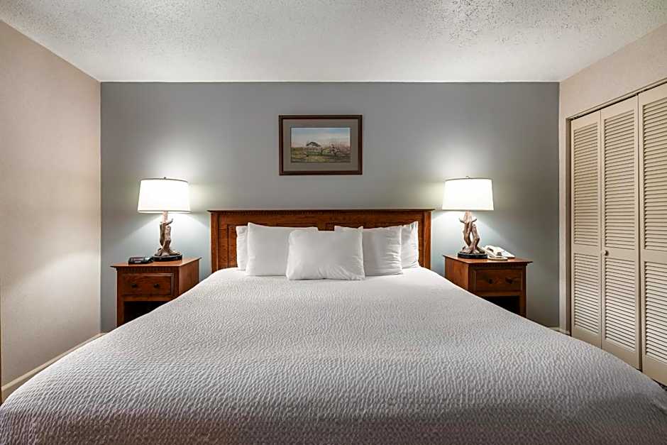 Charming studio that can easily accommodate up to 3 people. Features: 1 Queen bed and sleeper sofa; Kitchenette with dorm size fridge - no stove; Fireplace - Select Units